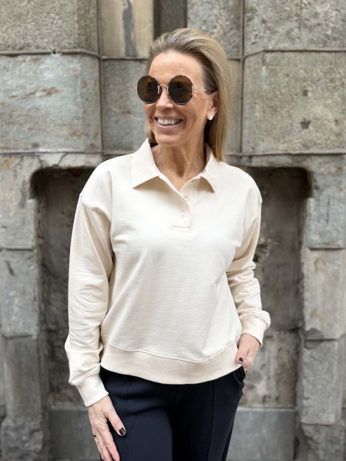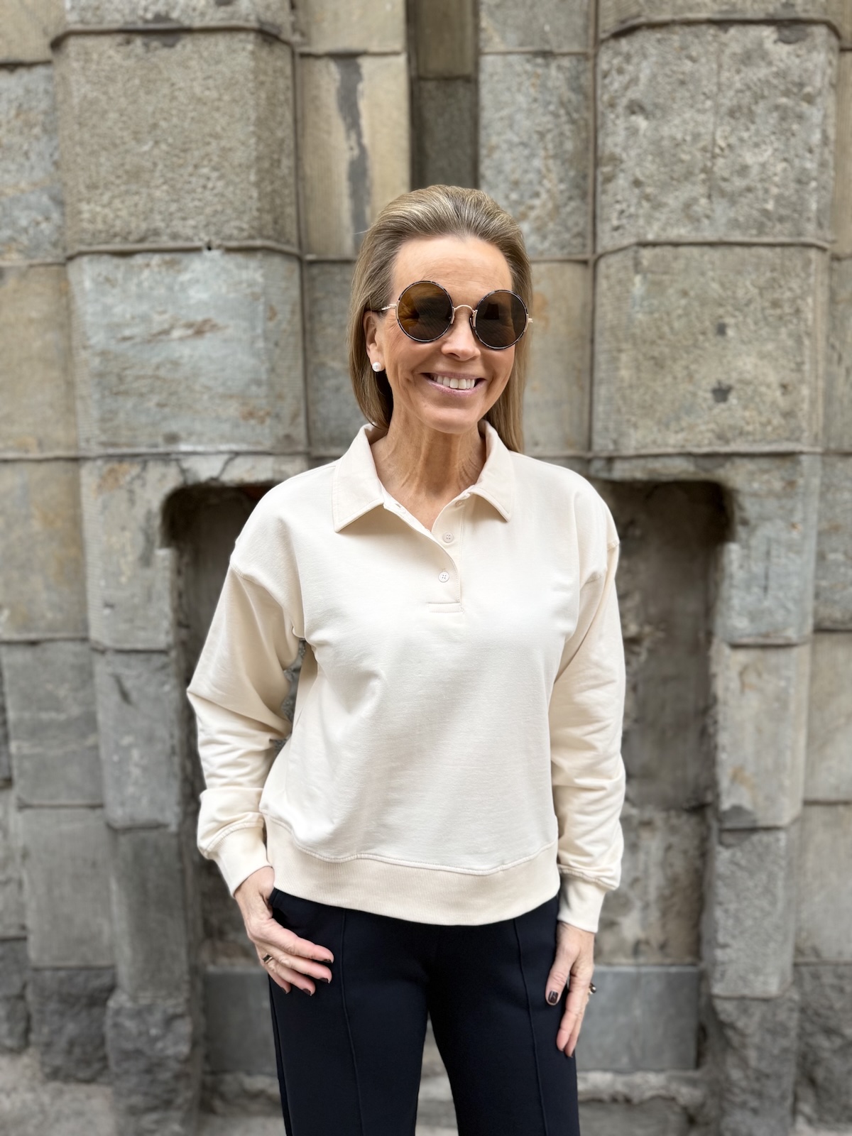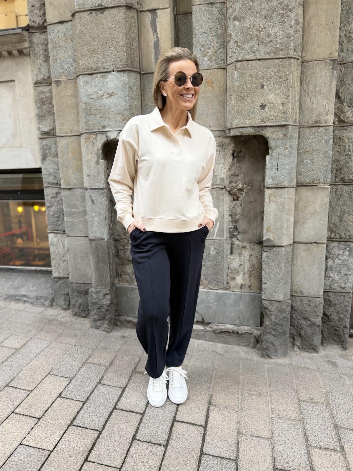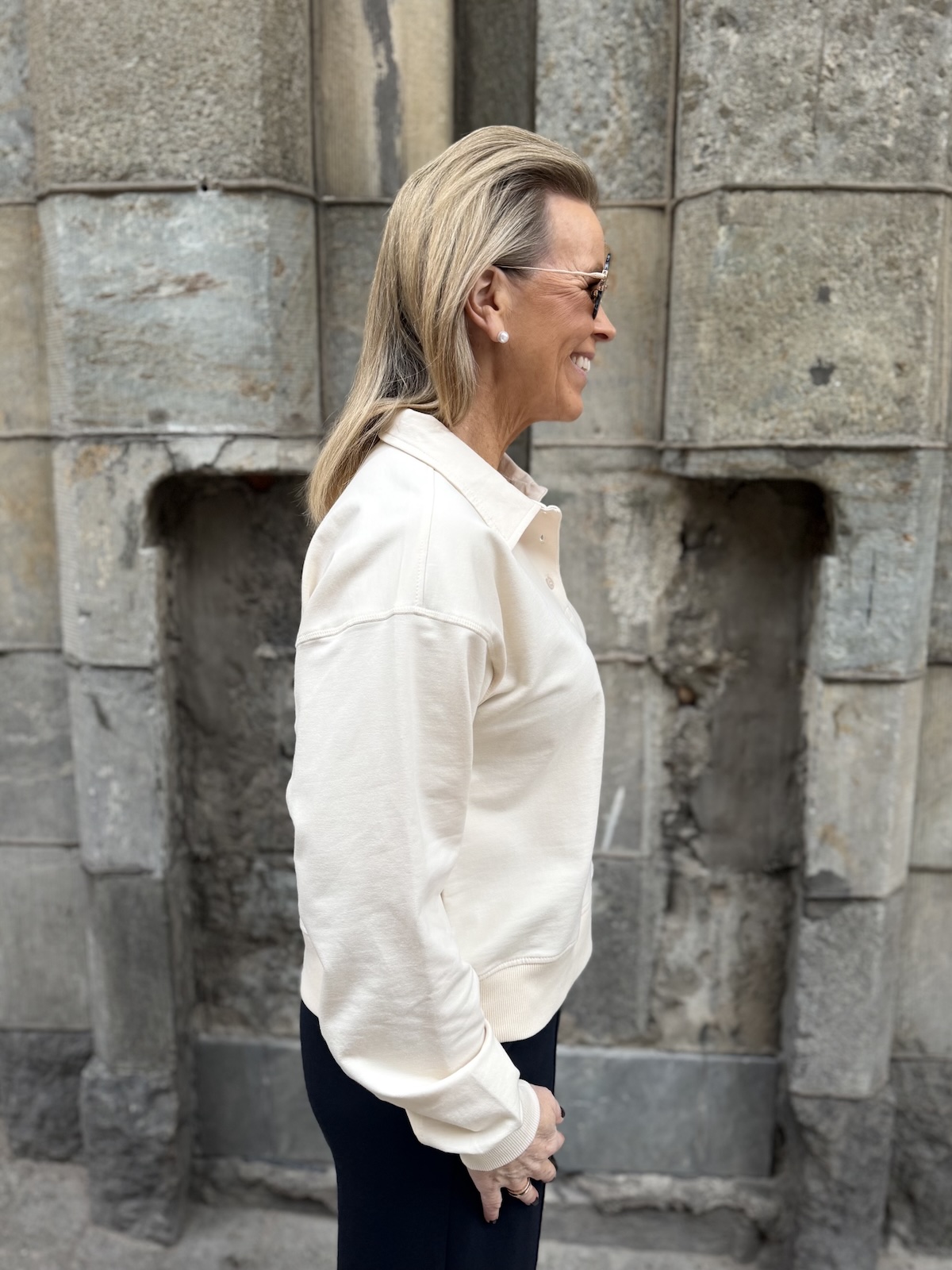 Satya paita on rento paita, joka on ihana iholla. Paidassa on kaulukset ja edessä on muutama nappi. malliltaan paita on suora ja laatikkomainen ja se loppuu lonkkaluiden alapuolelle. Paidan hihansuissa ja helmassa on resorit. Katalla on paidasta päällä koko XS. Paita on reilua kokoa.