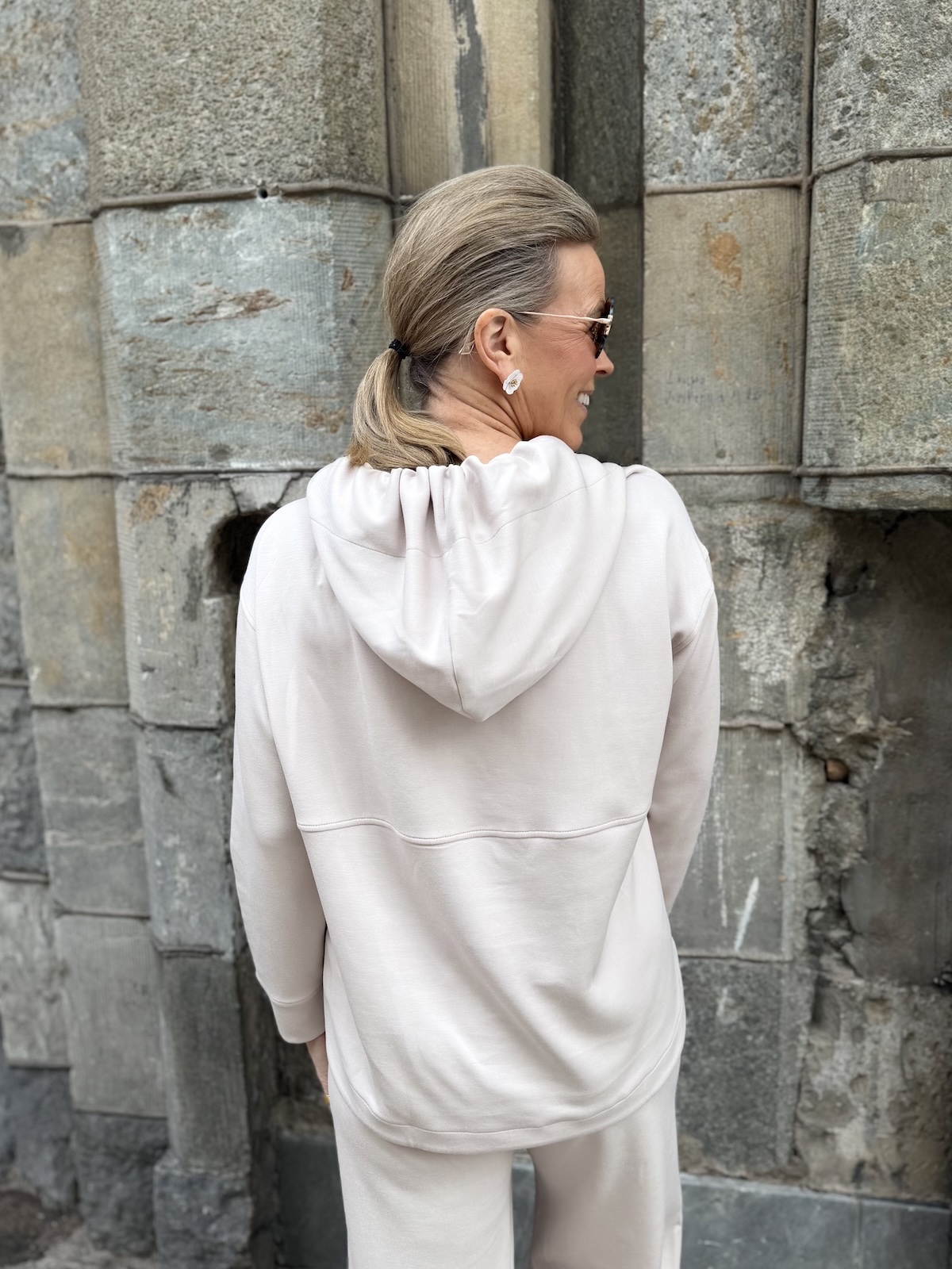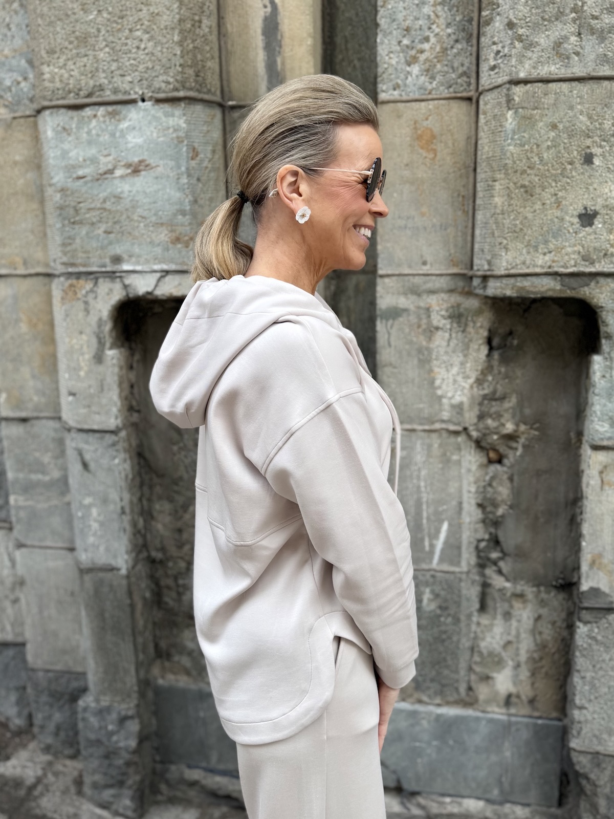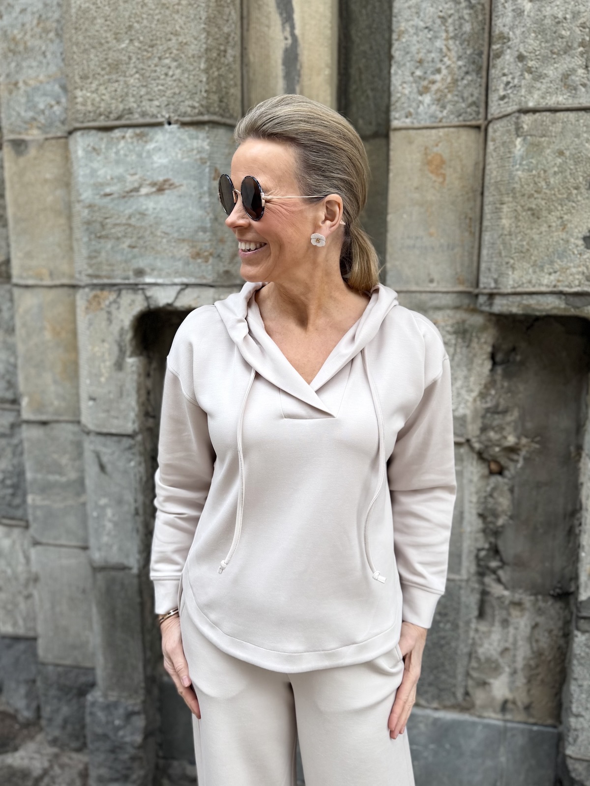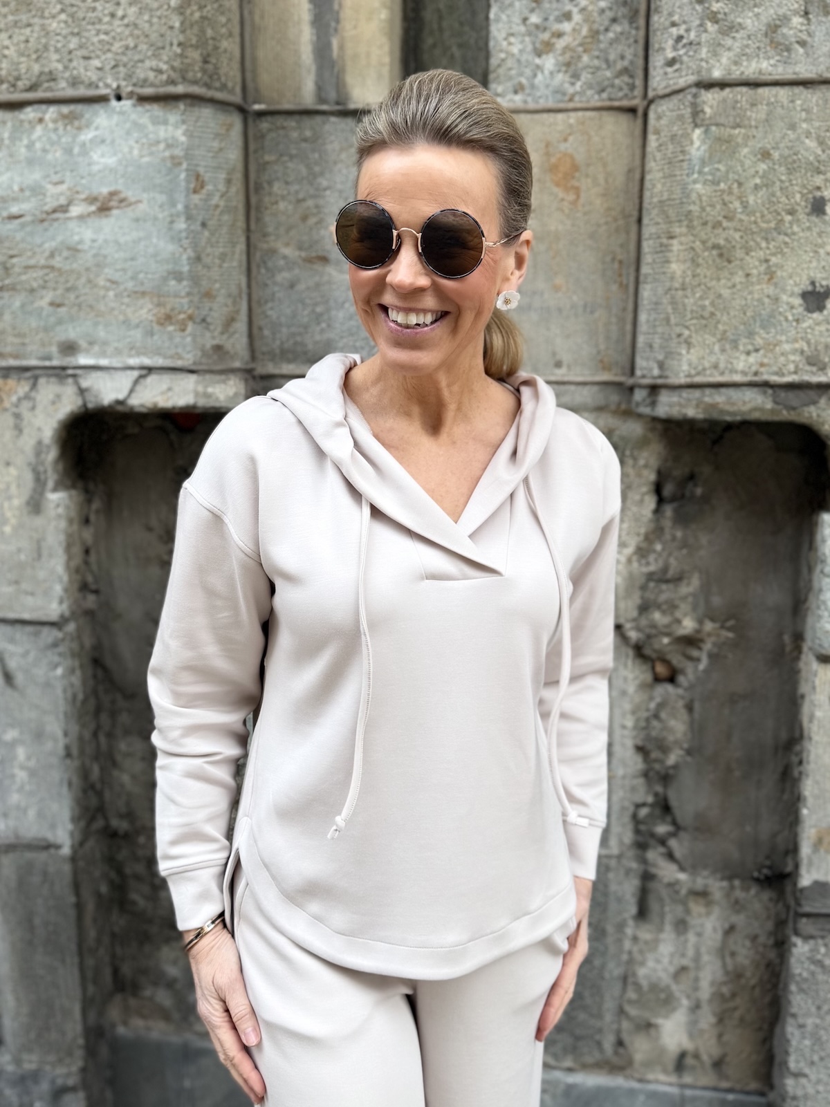 Simi Vincent sarjan huppari on rento, mutta tyylikäs. Hupparissa on tosiaan huppu ja hupun reunassa on nauhat. Edessä on V-aukko, jossa on leveä kantti reunassa. Hihat ovat täyspitkät ja hihansuissa on resorit. Huppari on malliltaan suora ja se on edestä hieman lyhkäisempi kuin takaa. takaa se ylettyy pepun alapuolelle. Katalla on hupparista päällä koko XS. Huppari on reilua kokoa. Hupparia ei valitettavasti ole saatavilla lisää.
