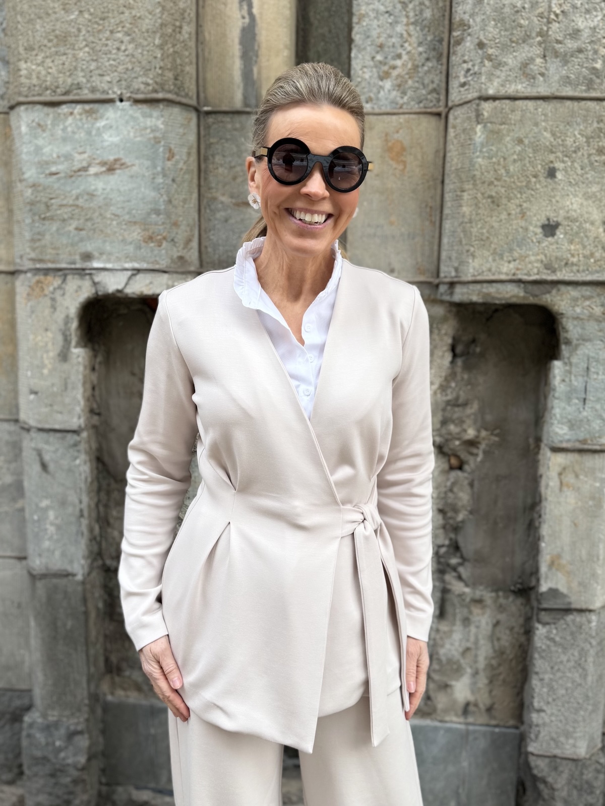 Simi Vincent kietaisupaita on upea ja ihanan pituinen, se ylettyy juuri pepun alapuolelle. Paita aukeaa kokonaan ja sisällä on nappi millä sisäosan saa kiinni ja päälliosa sidotaan vyötärölle joko solmulle tai rusetille. Katalla on paidasta päällä koko S. Paita menee juuri ja juuri edestä kiinni mutta paidan alle voi pukea topin tai irtokaulukset kun ne saapuvat helmikuun alussa. Paidan koon määrittelee suureksi osaksi vyötärön mitta jotta paita menee kauniisti päälle eikä ”vedä” vyötäröstä.