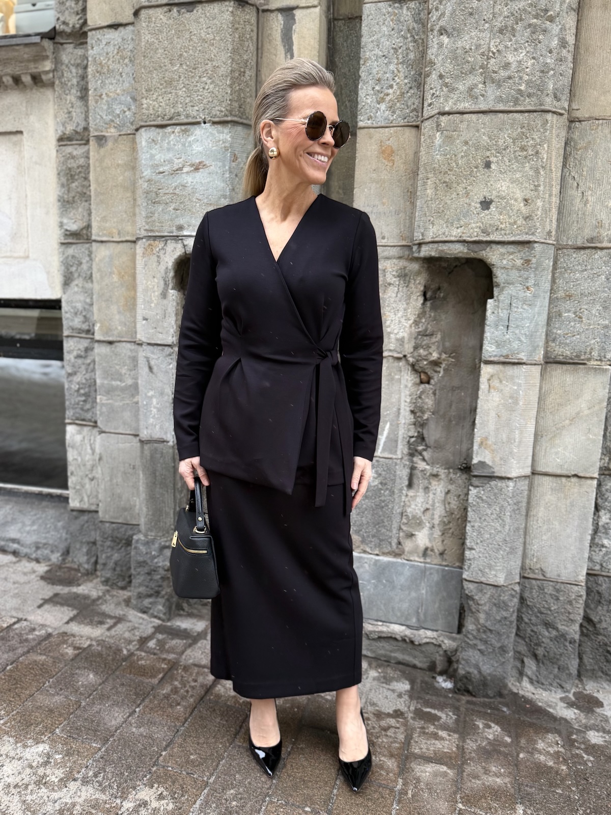 Simi Vincent kietaisupaita on upea ja ihanan pituinen, se ylettyy juuri pepun alapuolelle. Paita aukeaa kokonaan ja sisällä on nappi millä sisäosan saa kiinni ja päälliosa sidotaan vyötärölle joko solmulle tai rusetille. Katalla on paidasta päällä koko S. Paita menee juuri ja juuri edestä kiinni mutta paidan alle voi pukea topin tai irtokaulukset kun ne saapuvat helmikuun alussa. Paidan koon määrittelee suureksi osaksi vyötärön mitta jotta paita menee kauniisti päälle eikä ”vedä” vyötäröstä.