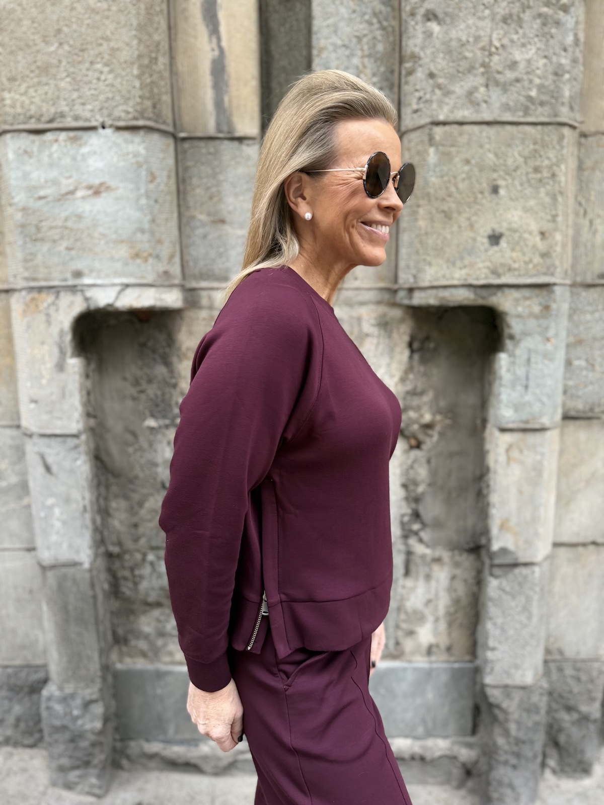 Zola paita on pehmoinen ja aivan ihana päällä ja arvaahan sen, koska se kuuluu ”Pumpulia iholle” olevaan sarjaan. paita on malliltaan suora ja laatikkomainen ja se loppuu noin lonkkaluiden alapuolelle. Paidan kauluksessa, hihansuissa ja helmassa on resorineulokset. Paidan sivuissa on noin 20 cm pituiset vetoketjut. Katalla on paidasta päällä koko XS. Paita vastaa normaalia/hieman reilumpaa kokoa, mutta reilumpi se saa malliltaan ollakin, koska kyseessä on rento paita. Yhdistä paita saman sarjan housuihin tai erikseen esim. farkkujen kanssa.
