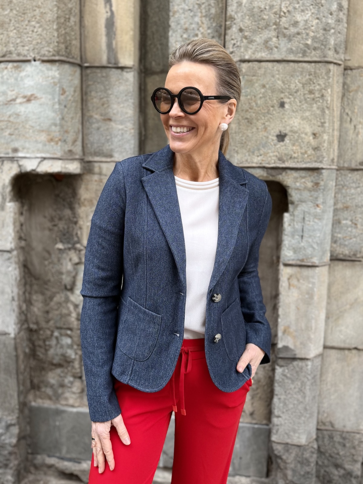 Caroline on loistava paita pitää joko yksistään tai se on helppo pukea niin jakkujen kuin neuletakkien alle. Paidassa on kaksivärinen resorikaulus, joka toistuu hihansuissa. Etuosa on kangasta ja takaosa on joustavaa viskoosi/elastania. Malliltaan paita on suora ja sen helma on pyöristetty. Katalla on paidasta päällä koko 34.