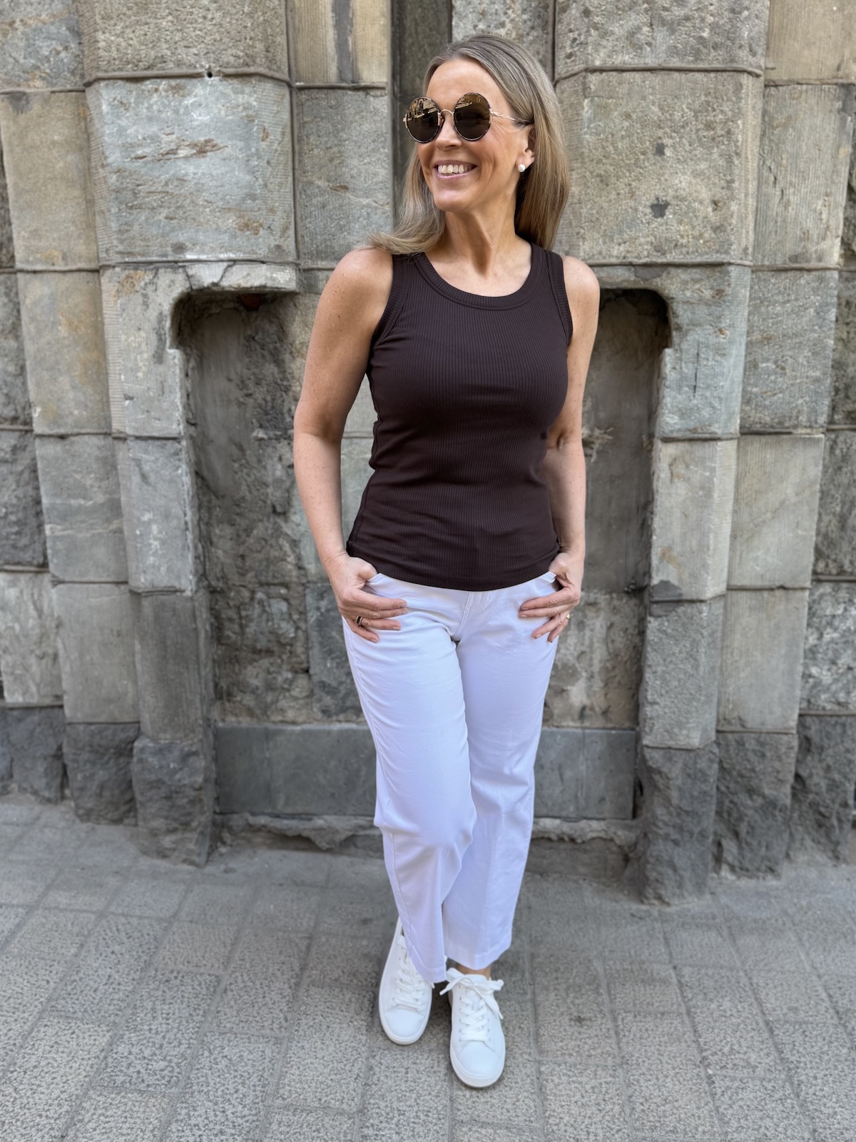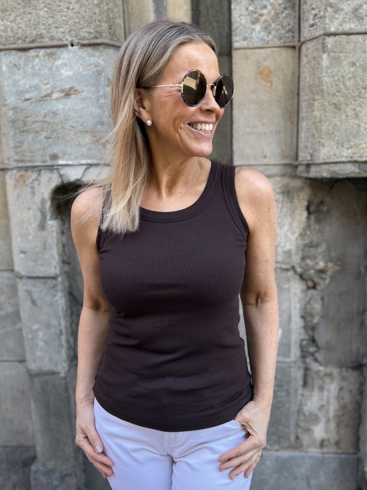 Dagna on ribbitoppi, joka on hieman napakampaa ribbineulosta. Ribbi on mukavan tuntuista iholla ja siitä loistava, kun se ei ole löysä ja lörö vaan pitää hyvin kuosinsa. Ribbitoppi on vartalonmyötäinen toppi ja se loppuu lantiolle. Katalla on topista päällä koko S. Toppi vastaa normaalia kokoa.