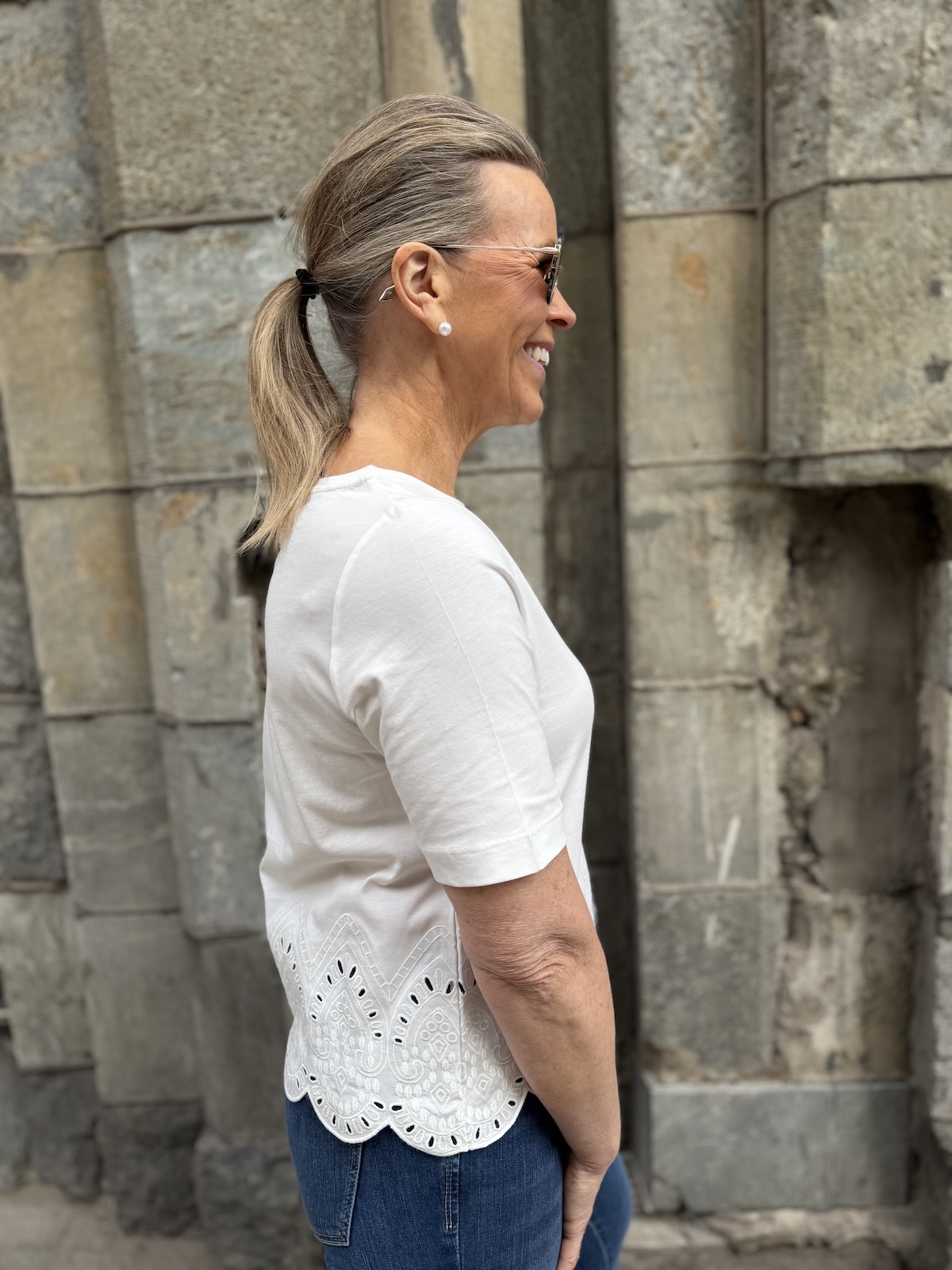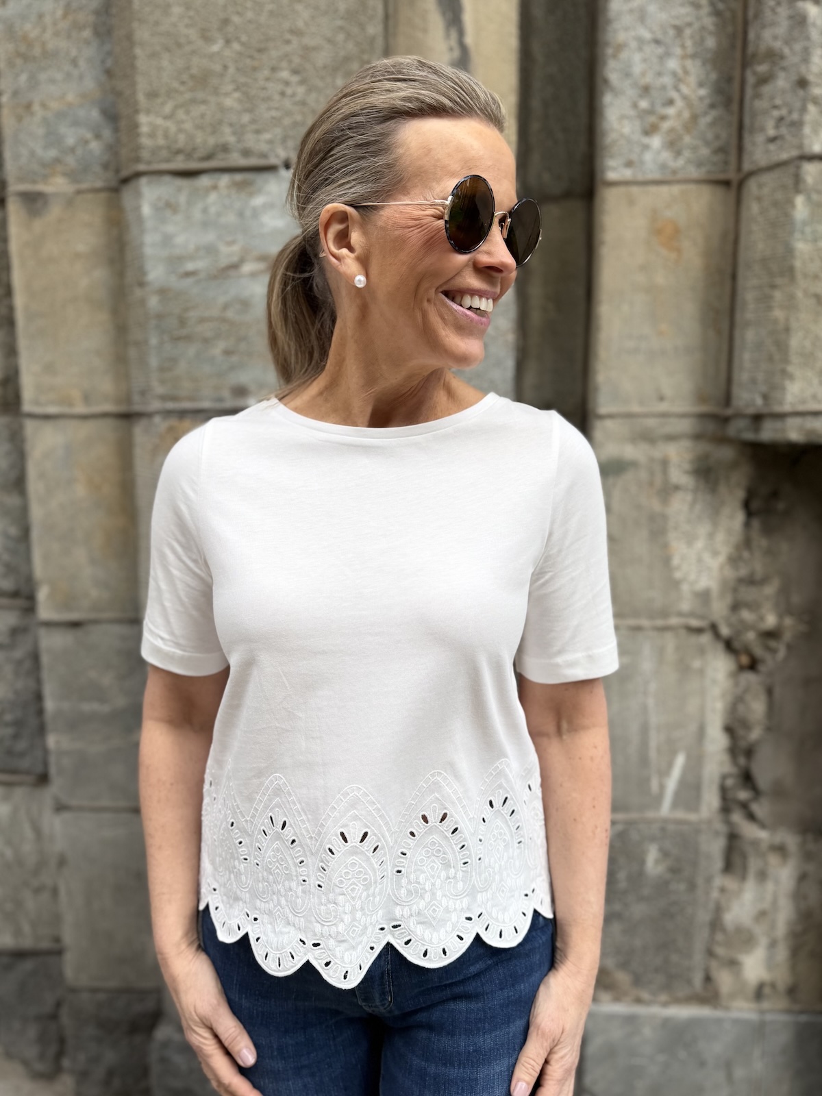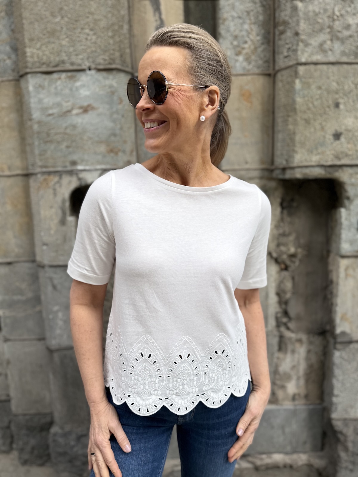 Edla t-paita helmakirjoilulla; luonnonvalkoinen