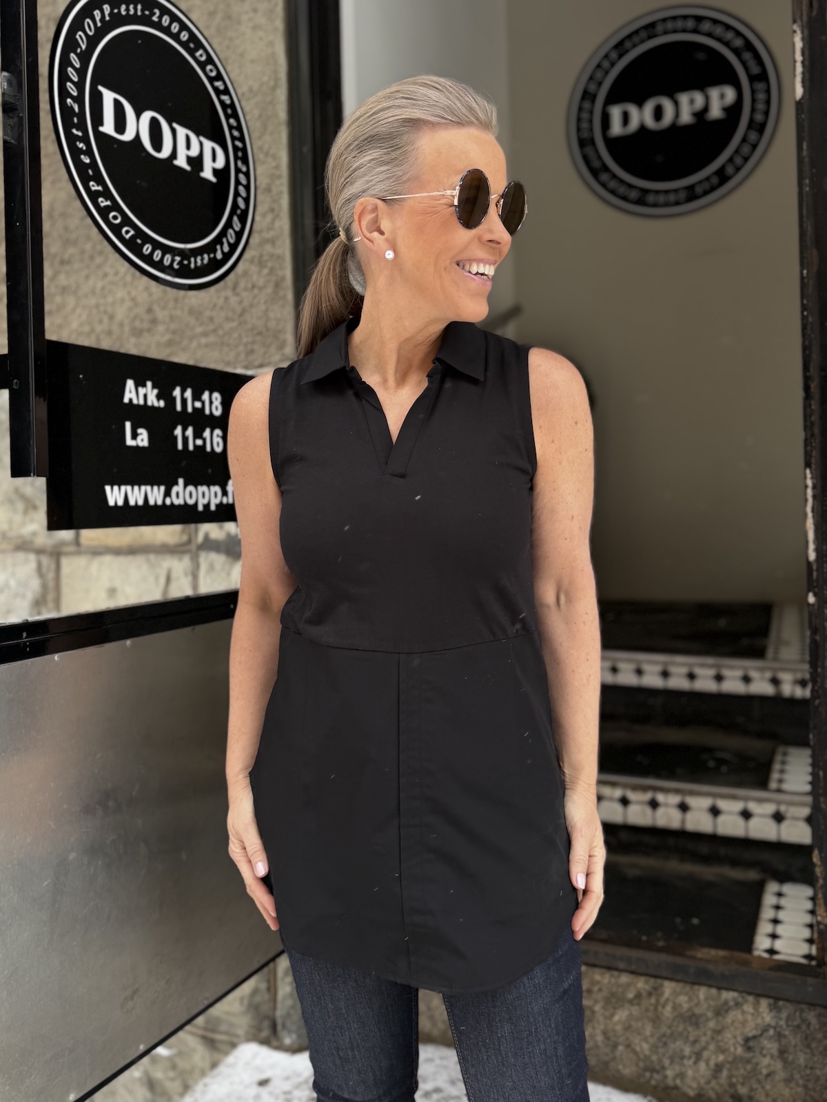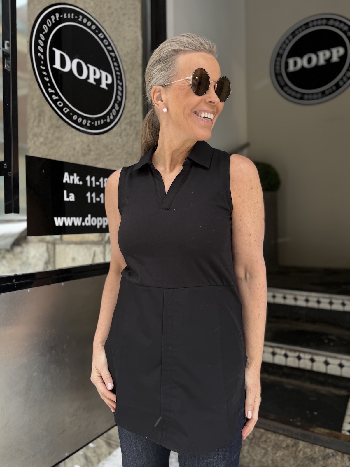 Kauluksellinen Delphina toppi; musta