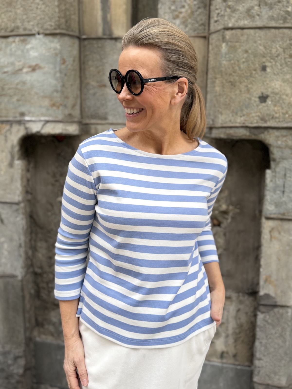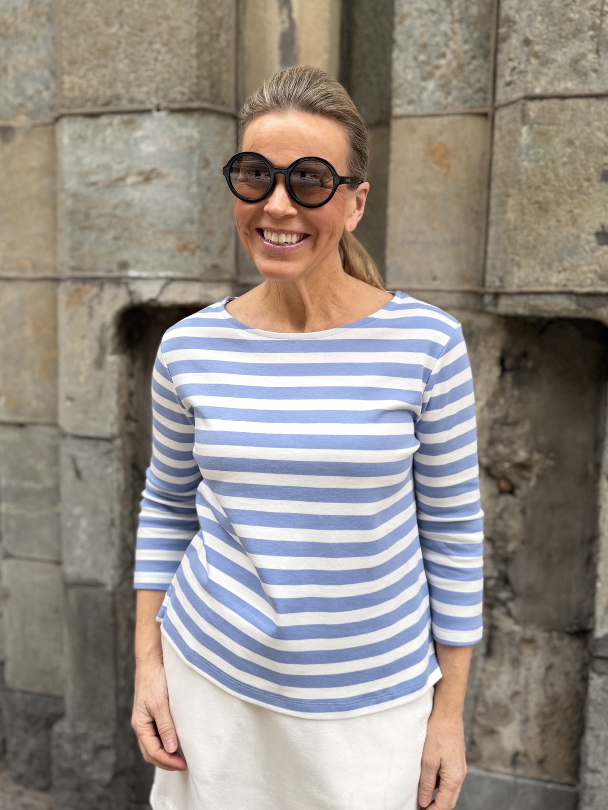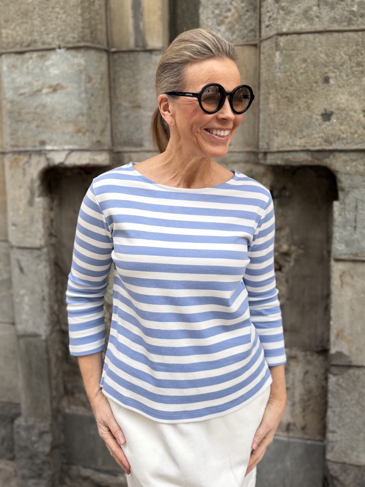 Nela 3/4 hihainen paita; vaaleansininen raita