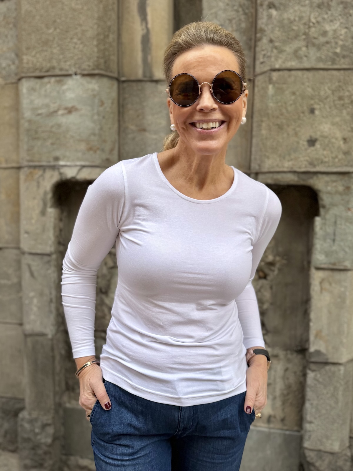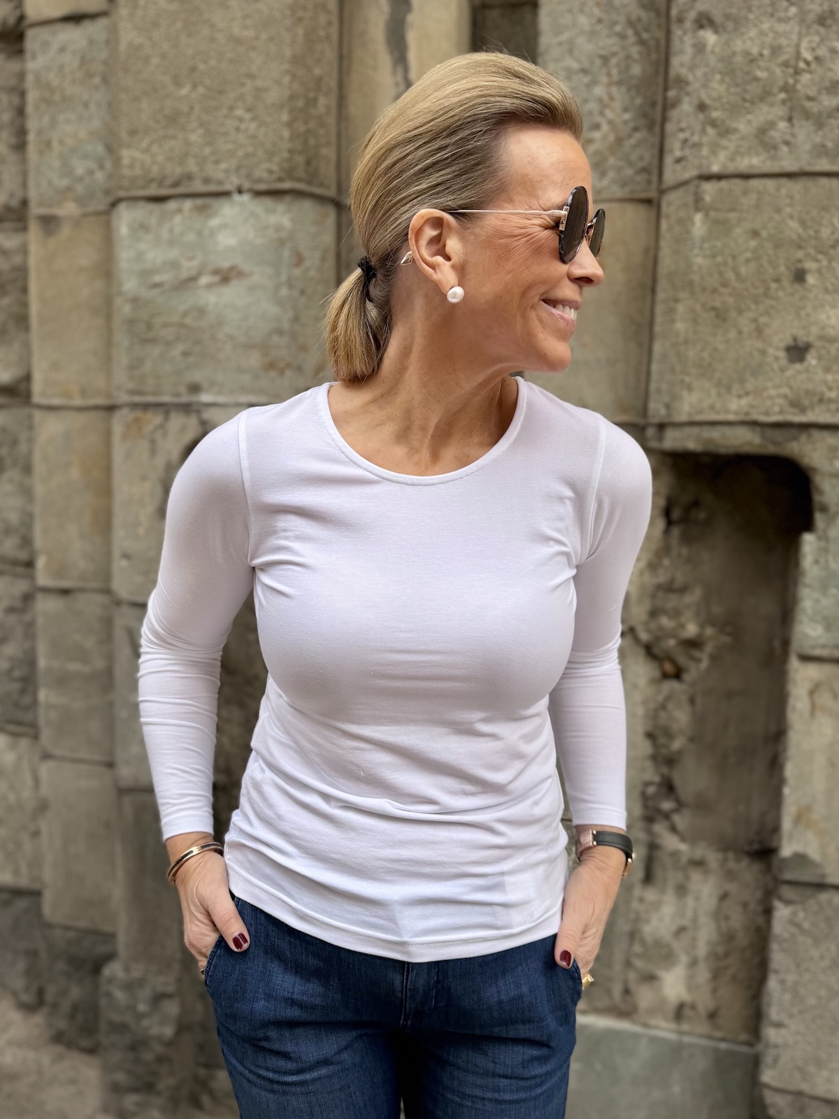 Pitkästä aikaa on saatavilla taas pitkähihaisia T-paitoja. Nemajas paidassa on O-kaula-aukko ja pitkät hihat. Malliltaan se on vartalonmyötäinen ja se ylettyy lantiolle. Nemajas on pehmoinen ja jousta ja miellyttävä päällä. Katalla on T-paidasta päällä koko S. Ota paidasta normaali kokosi.