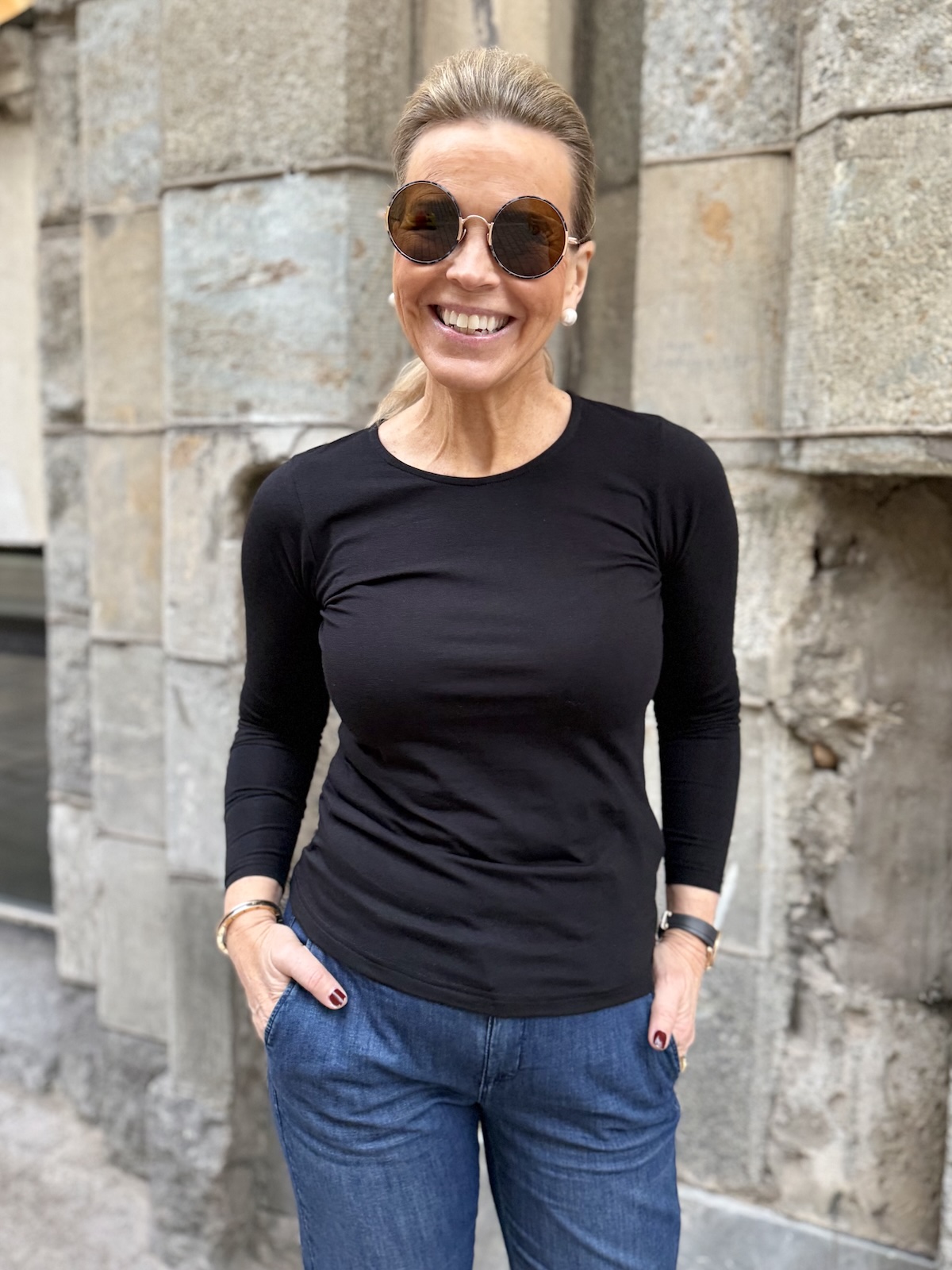 Pitkästä aikaa on saatavilla taas pitkähihaisia T-paitoja. Nemajas paidassa on O-kaula-aukko ja pitkät hihat. Malliltaan se on vartalonmyötäinen ja se ylettyy lantiolle. Nemajas on pehmoinen ja jousta ja miellyttävä päällä. Katalla on T-paidasta päällä koko S. Ota paidasta normaali kokosi.