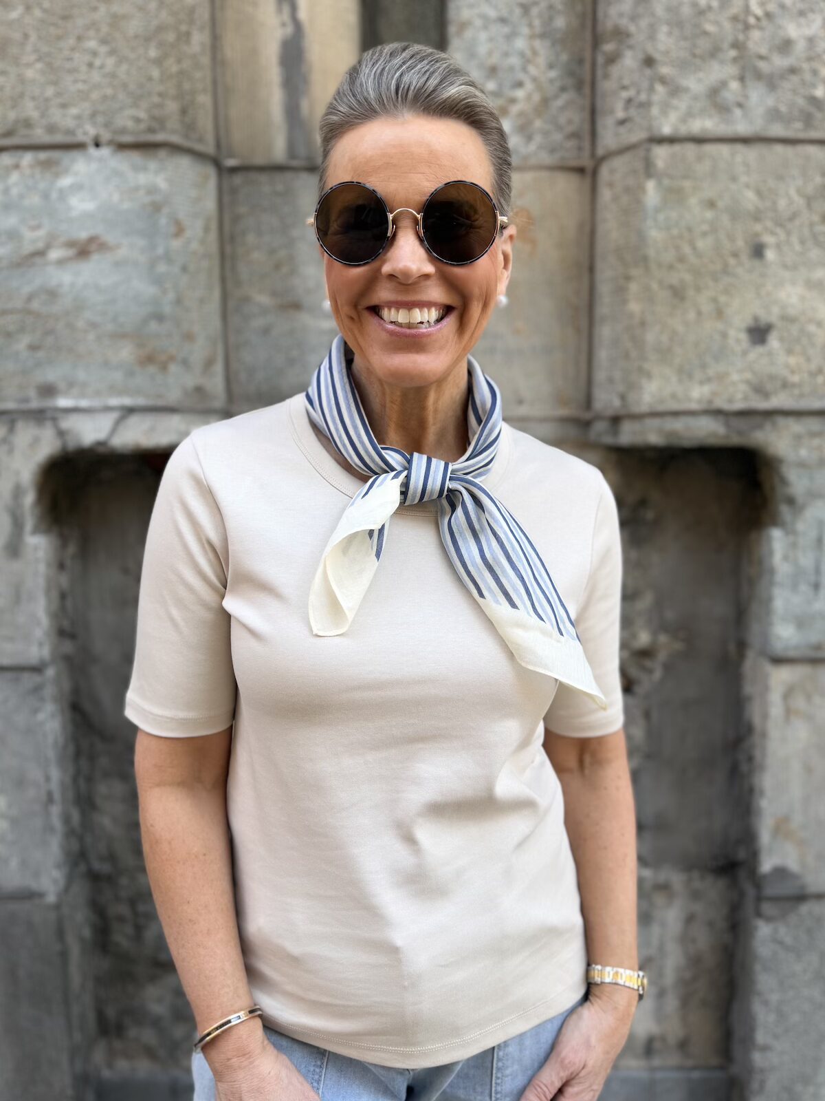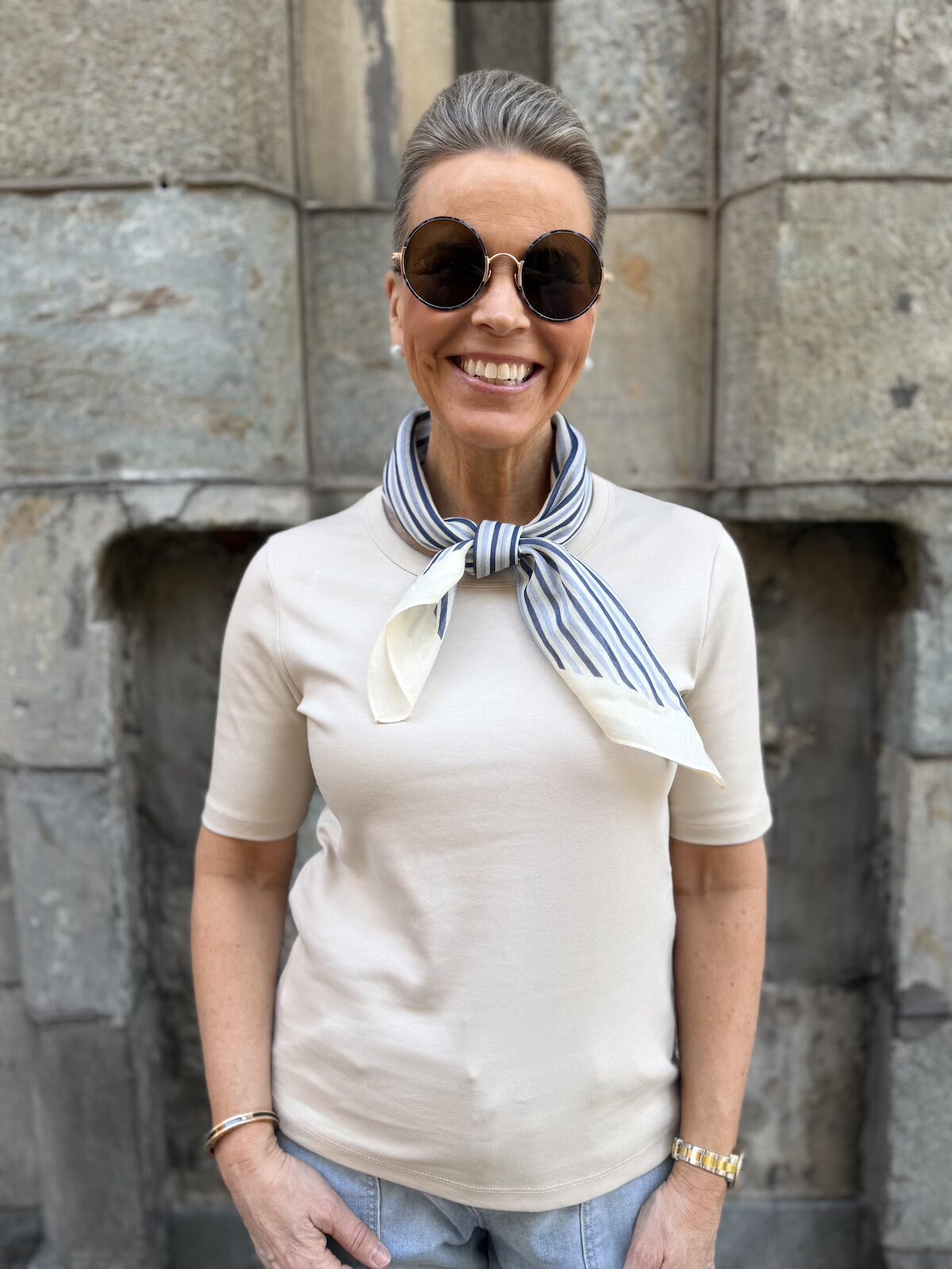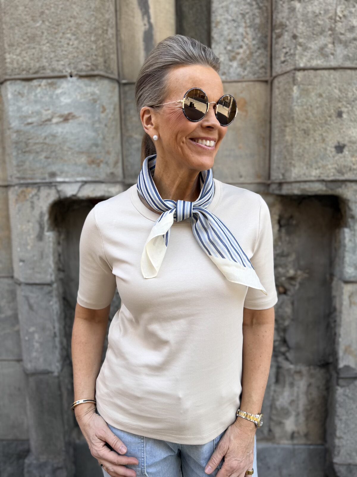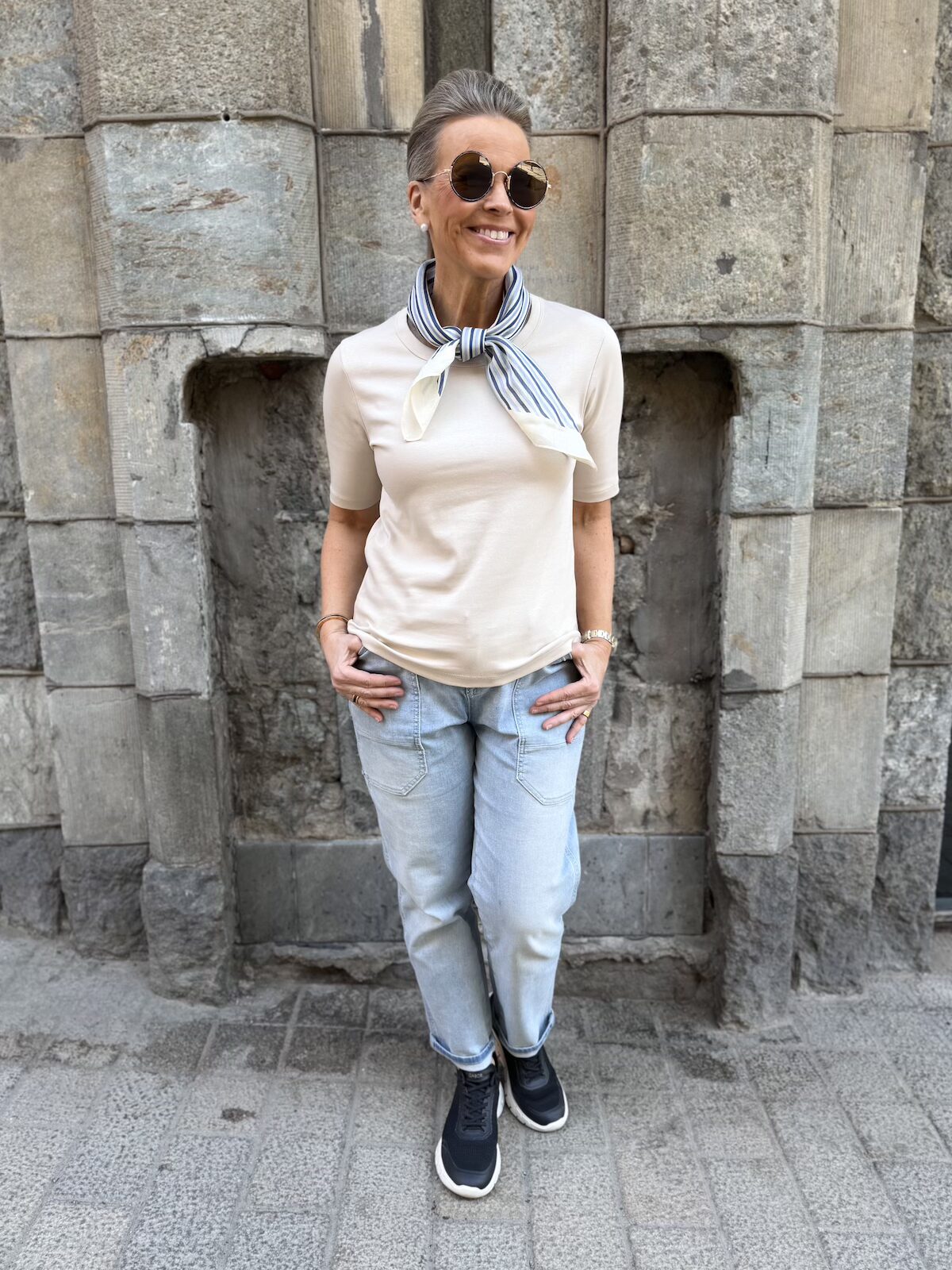 Ratana on klassinen T-paita, joka on 100% puuvillaa. Paidassa on aavistuksen pidemmät hihat ja malliltaan se on suora ja loppuu lantiolle. T-paidassa on hieman paksumpi materiaali eli se ei ole läpikuultava. Katalla on T-paidasta päällä koko S. T-paita vastaa normaalia kokoa.