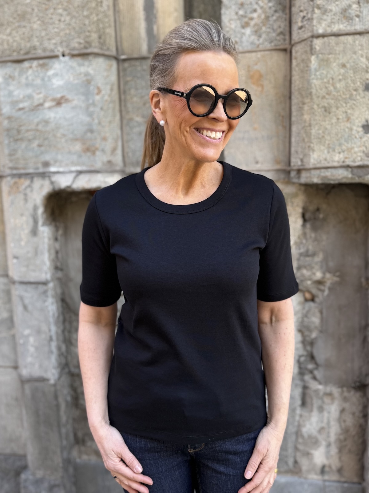 Ratana on klassinen T-paita, joka on 100% puuvillaa. Paidassa on aavistuksen pidemmät hihat ja malliltaan se on suora ja loppuu lantiolle. T-paidassa on hieman paksumpi materiaali eli se ei ole läpikuultava. Katalla on T-paidasta päällä koko S. T-paita vastaa normaalia kokoa.