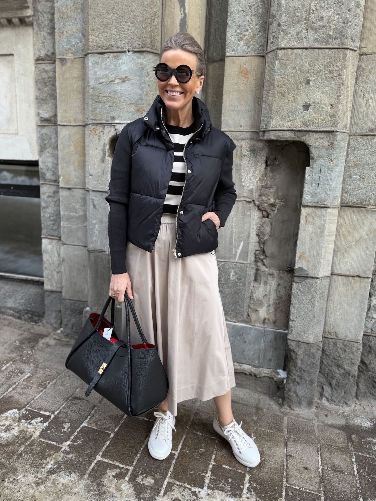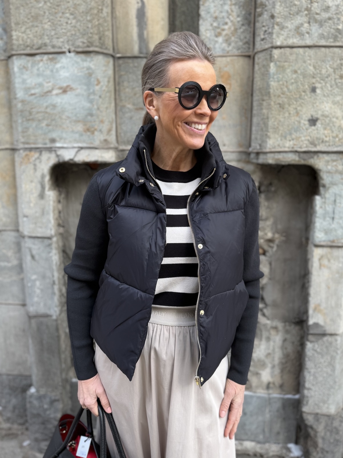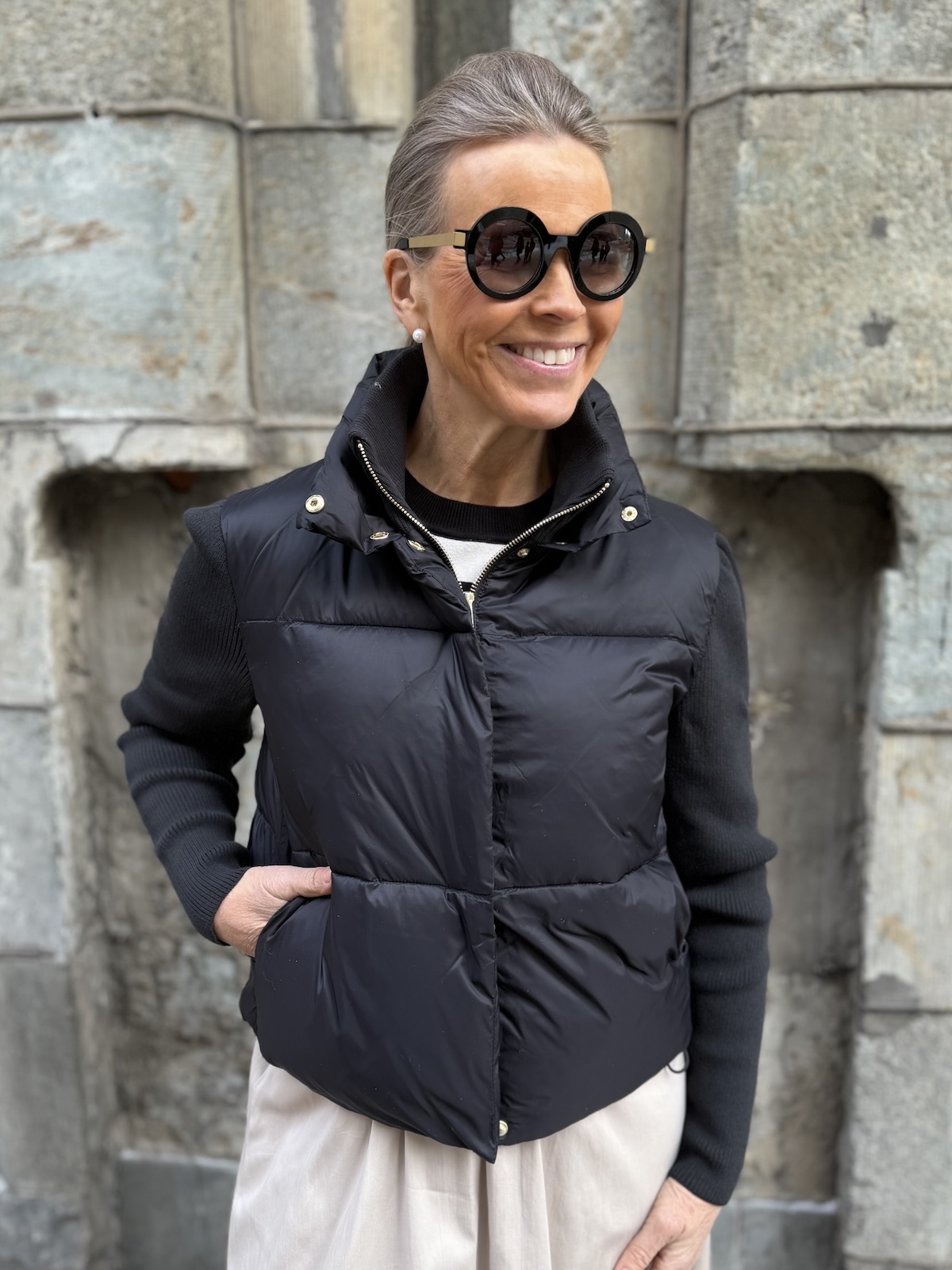 Harper pusakka neuloshihoilla on kerrassaan ylellisen tuntuinen pusakka! Pusakassa on polyesteri vanu sisällä. Hihat ja sisäkaulus ovat joustavaa neulosta. Edessä on sekä painonapit että kullanvärinen vetoketju. Kauluksen saa kuvan mukaisesti ihan ylös asti kiinni. Pusakan sisällä, helmassa on kiristysnauhat eli helman saa kiristettyä ja käännettyä pussille (katso kuva). Pusakan sivuissa on taskut. Pusakka ylettyy lantiolle. katalla on pusakasta päällä koko 34. Pusakka on reiluhkoa kokoa ja hihat joustavat reilusti. Rinnan ympäryksen mittaan ei tule jäädä enempää kuin 6-10 cm tilaa. (Katalla jää noin 12 cm, sekin on ok, mutta enempää ei tule jäädä).