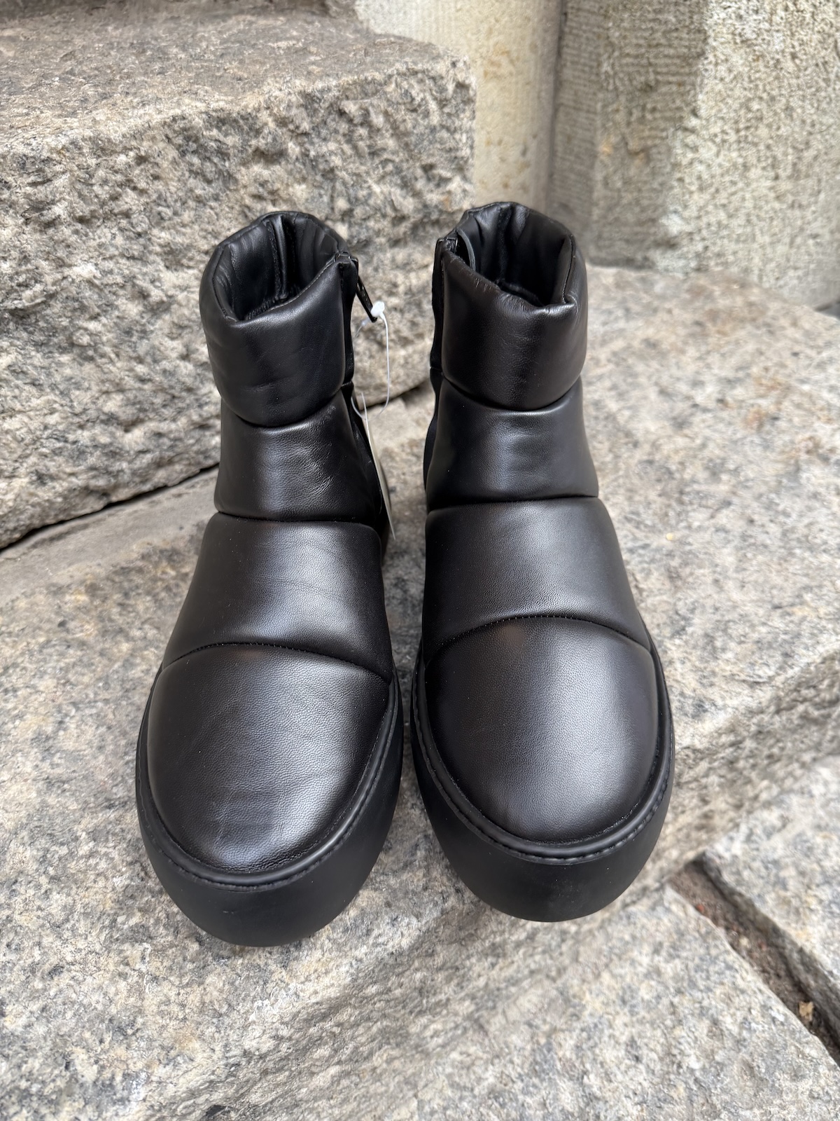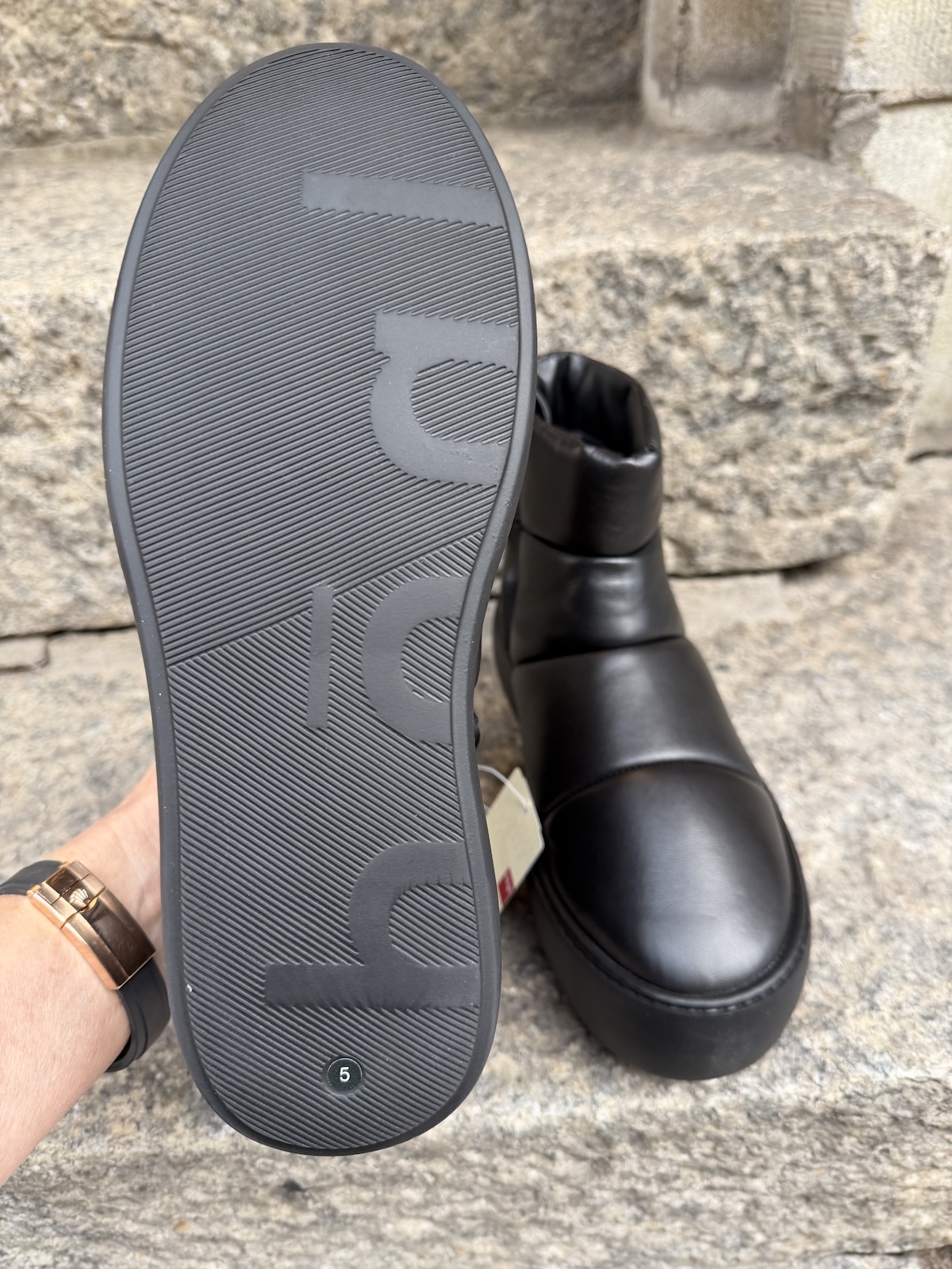 Athene nilkkurit ovat laadukkaat ja tyylikkäät nilkkurit. Nilkkurit ovat nahkaa ja niiden sisällä on musta tekoturkisvuori eli nämä ovat lämpöiset nilkkurit. Sisäpuolella on vetoketju. Nilkkurit vastaavat täysin omaa kokoa. Karva tulee sisällä hieman litistymään käytössä eli silloin nilkkureihin tulee lisää tilaa. Kata käyttää nilkkureista kokoa 5, joka vastaa kokoa 38 ja tätä kokoa hän käyttää muutenkin. Muista sovittaa nilkkureita nylonsukilla tai vastaavilla. Jos sukat ovat liian paksut tai ne eivät yhtään luista, on karvavuorellisia kenkiä vaikea saada jalkaan, ennen kuin karva on sisällä käytössä paininut hieman kasaan.