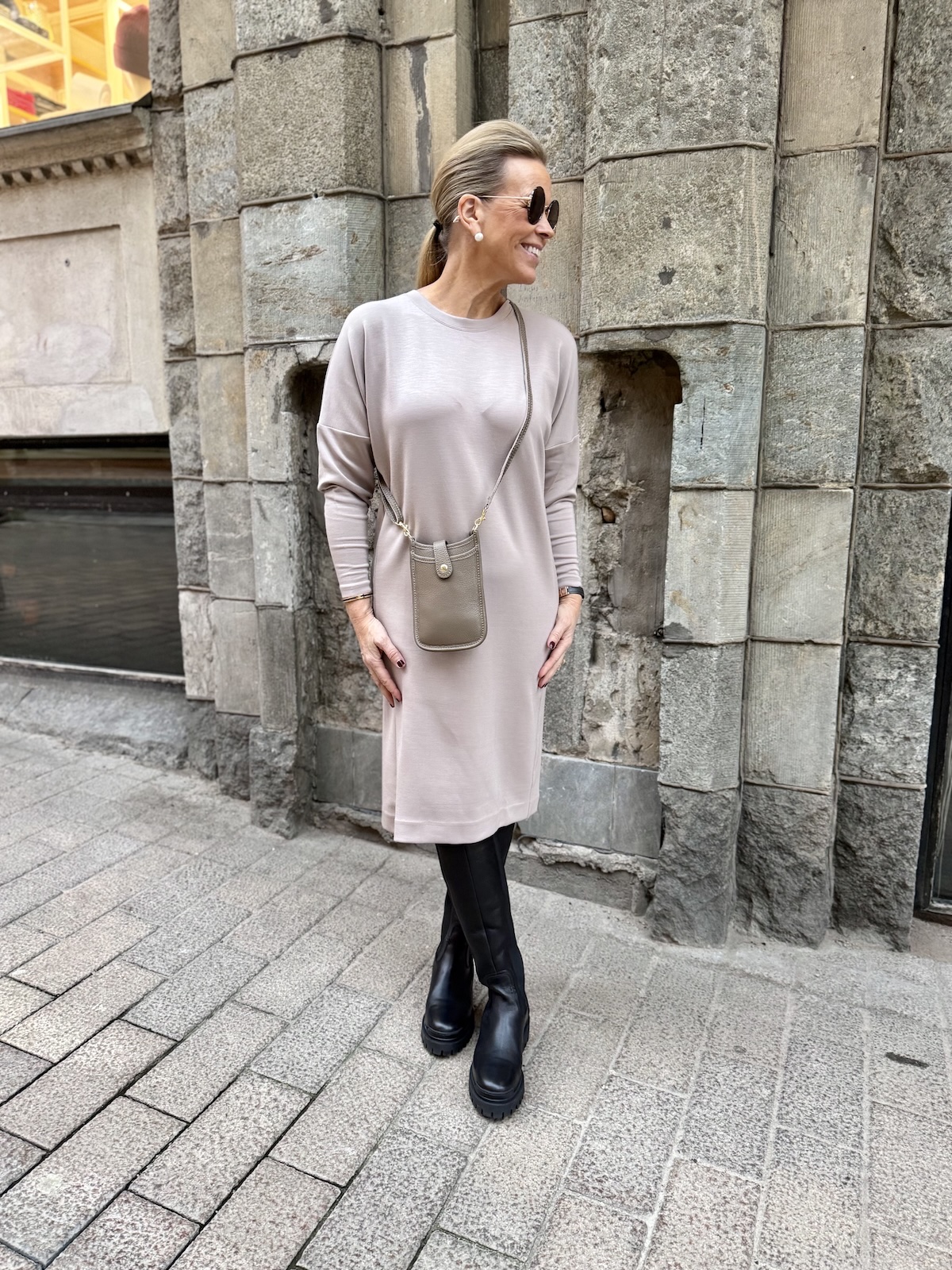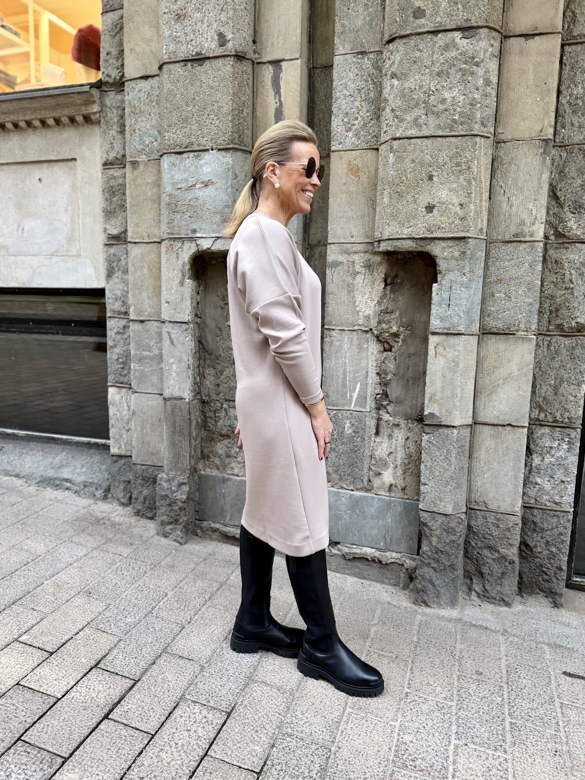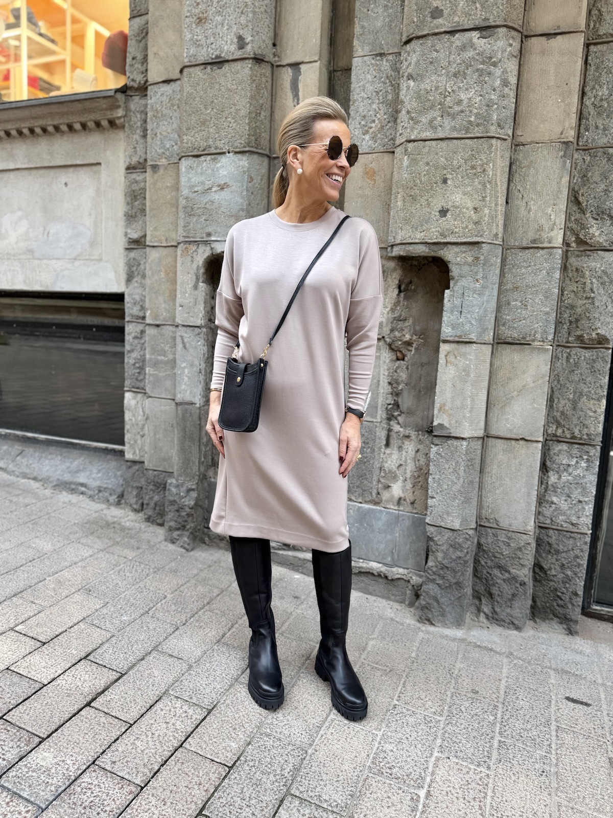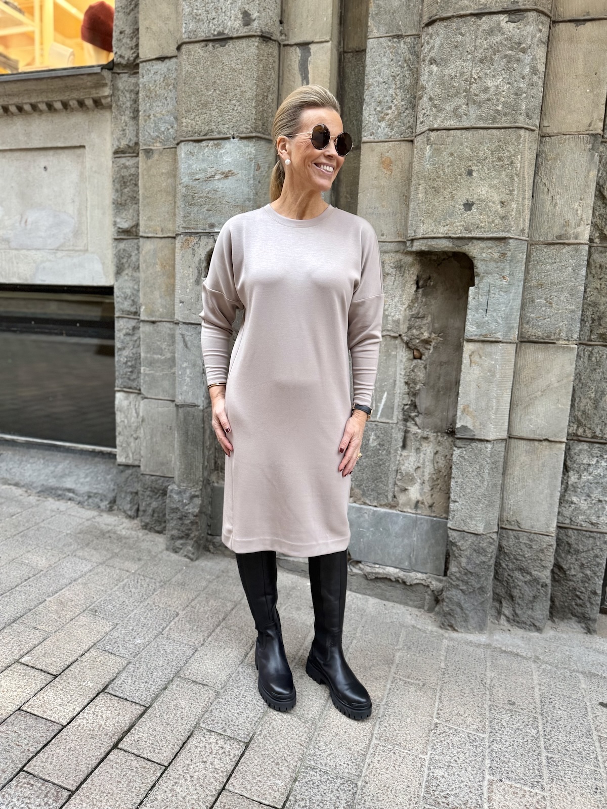 Annieh mekko kuuluu ”Pumpulia iholle” olevaan sarjaan. Mekossa on O-kaula-aukko. Olkasaumat on laskettu ja hihat kapenevat ranteita kohden. Mekon kainaloissa on hieman tilaa ja malliltaan mekko on suora alas, helmaan saakka. Mekko loppuu juuri polvien alapuolelle. Katalla on mekosta päällä koko XS.