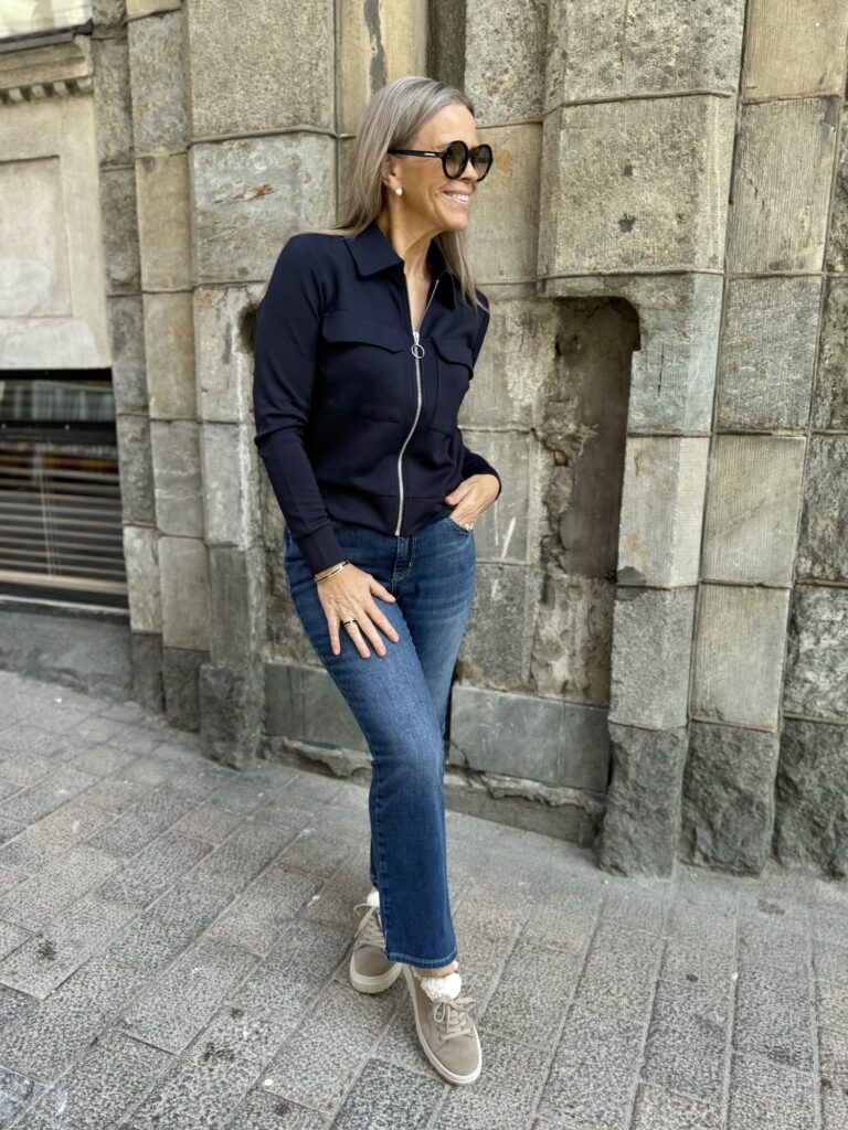 Pusakkaa voi pitää auki tai kiinni. Pusakan voi yhdistää erilaisiin alaosiin, mekon päälle tai Aida midihameen kanssa, jolloin saa kivan asukokonaisuuden.