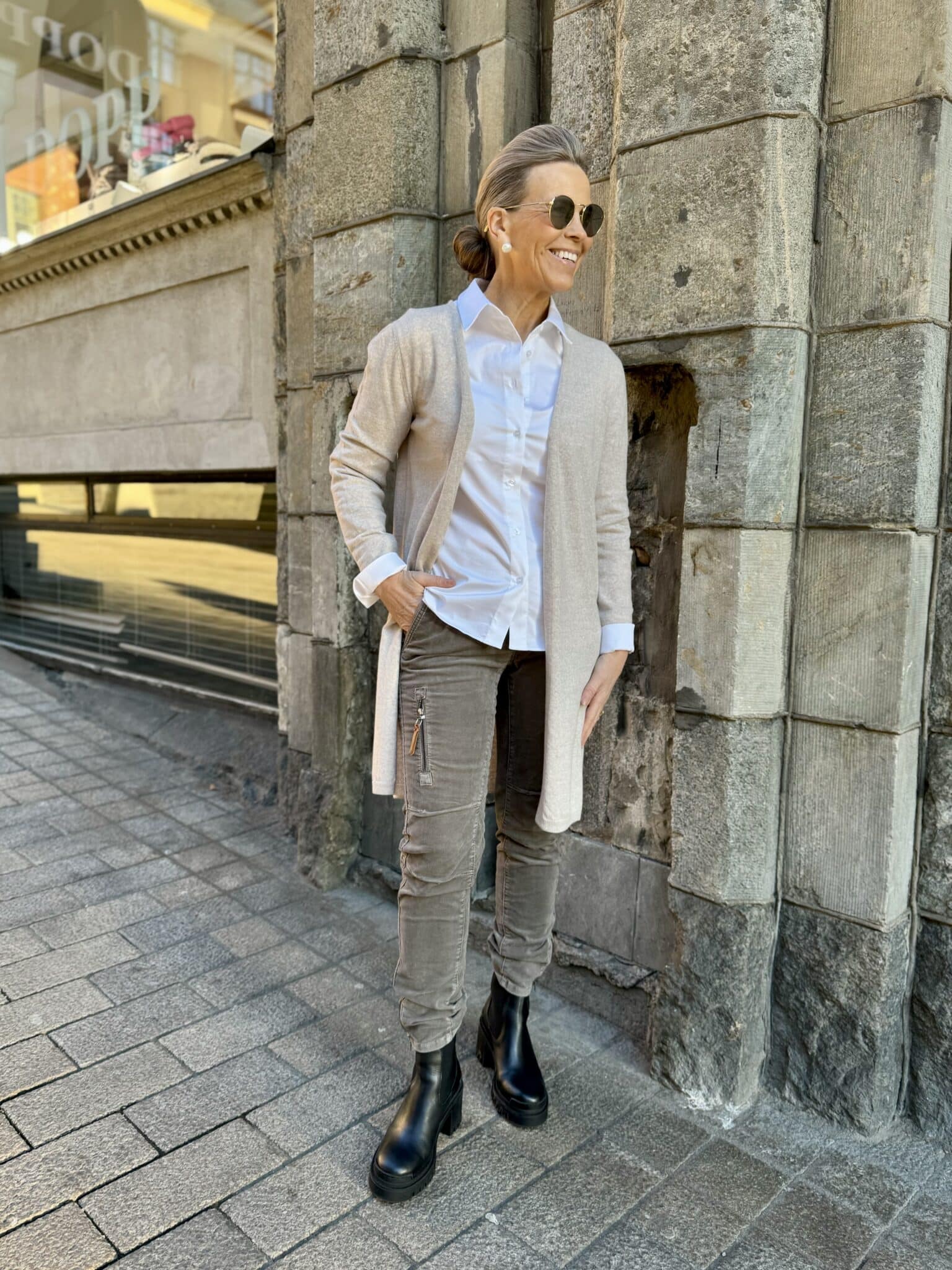 Cally paitapusero on klassinen paitapusero joka on kauniisti slimmattu vyötärön kohdalta. Paitis on aavistuksen tukevampaa kangasta, joten siitä ei näy läpi. Hihojen rannekkeet ovat leveät, joten ne ovat näyttävät kun ne kääntää. Paidan helma on pyöristetty ja paita ylettyy lantiolle. Katalla on paidasta päällä koko 36. Paita on yhtä kokoa pienempi kuin normaalisti.