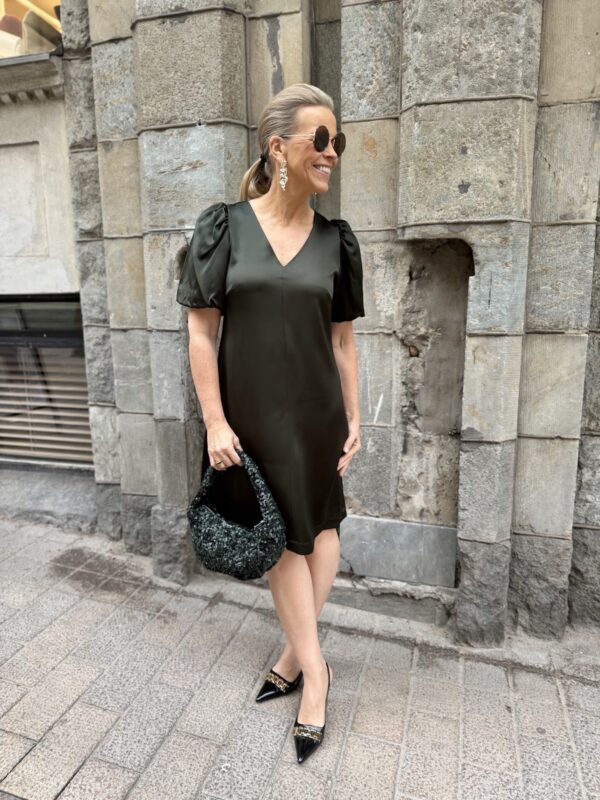 Sendra midimekko V-kaula-aukolla; tummanvihreä
