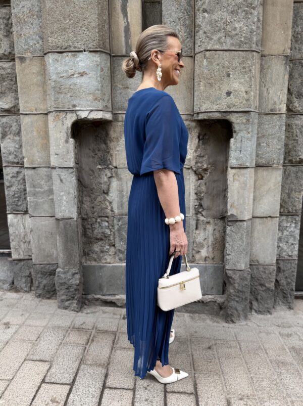 Airia brodeerattu mekko; tummansininen/valkoinen