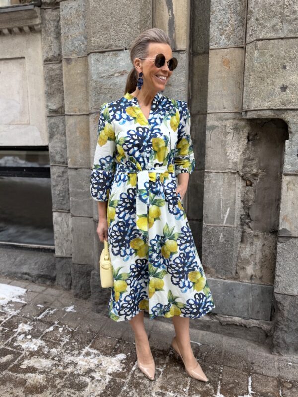 Bitelle polvimittainen mekko; tummansininen kuvio