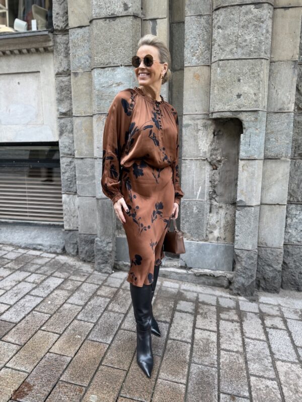 Anikko sifonkipaita nauhoilla; beige/ruskeaprinttikuvio