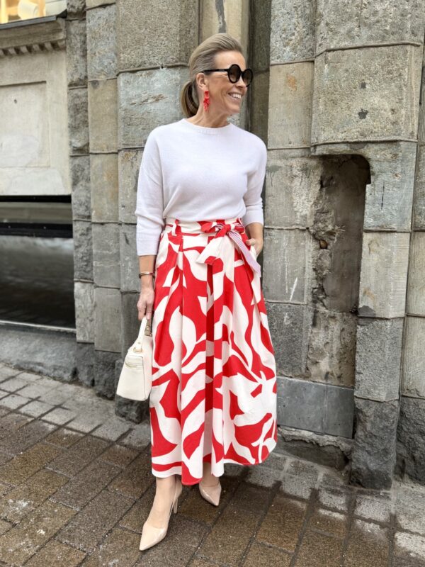Daniela lyhythihainen neuletakki; puna/valkoinen
